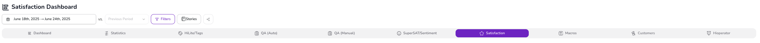 To access the CSAT Dashboard, select the "Satisfaction" tab located within the main navigation menu of your HiQ dashboard.