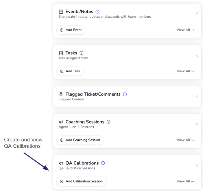 - Scroll down the dashboard till you locate "QA Calibration Sessions" from the right hand side menus